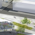 - la realizzazione di un ampio ed articolato spazio pubblico attrezzato (piazza verde) circondato da attività commerciali e servizi, tra i quali un centro polifunzionale per l’arte, la cultura e lo spettacolo ed una ludoteca-biblioteca-mediateca.