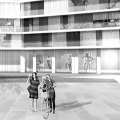 - la realizzazione di un ampio ed articolato spazio pubblico attrezzato (piazza verde) circondato da attività commerciali e servizi, tra i quali un centro polifunzionale per l’arte, la cultura e lo spettacolo ed una ludoteca-biblioteca-mediateca.